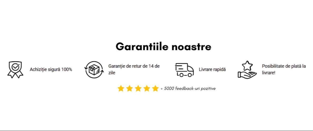 - Livrare standard: Comenzile sunt livrate în aproximativ 2-5 zile lucrătoare pentru majoritatea regiunilor din România.